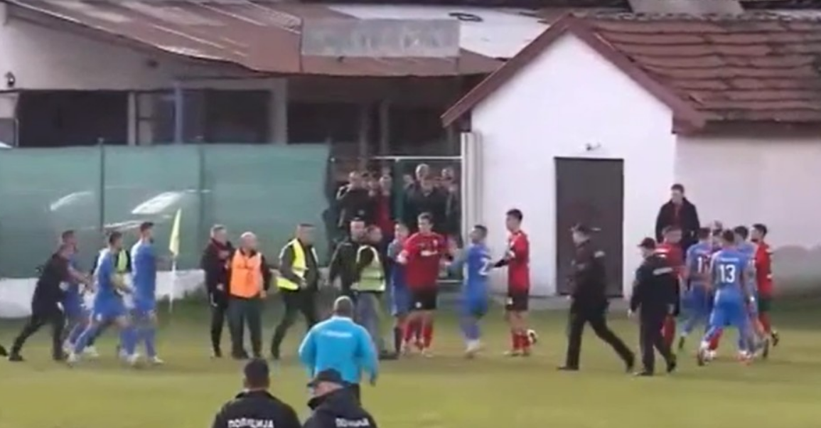 „На 21.11.2025 во 13:50 часот на стадион „Фортуна“ во Скопје, полициски службеници од СВР Скопје го приведоа Ш.А.(36) од с.Арачиново, скопско, затоа што за време на фудбалски натпревар помеѓу екипите на ФК „Шкендија 77“ и ФК „Брегалница“ физички нападнал играч на ФК „Брегалница“. По целосно документирање на случајот, ќе следува соодветен поднесок“, информираат од МВР.