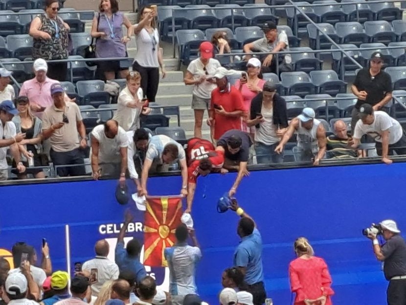 Ѓоковиќ во три сета го мина Тејлор Фриц, па после победата застана да подели некој автограм, па излезе во фокус македонското знаме на кое се потпиша Ѓоковиќ, по што нашиот навивач не можеше да ја скрие среќата.