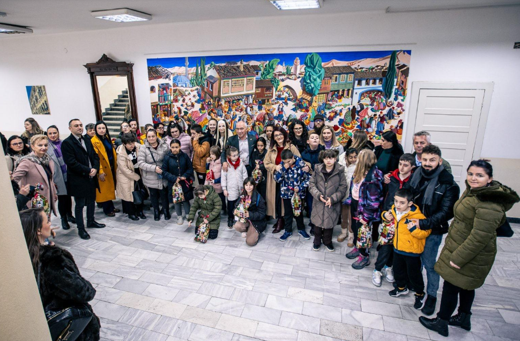 Посетата заврши со доделување на новогодишни пакетчиња и заедничка фотографија со градоначалникот, наставниците и родителите.