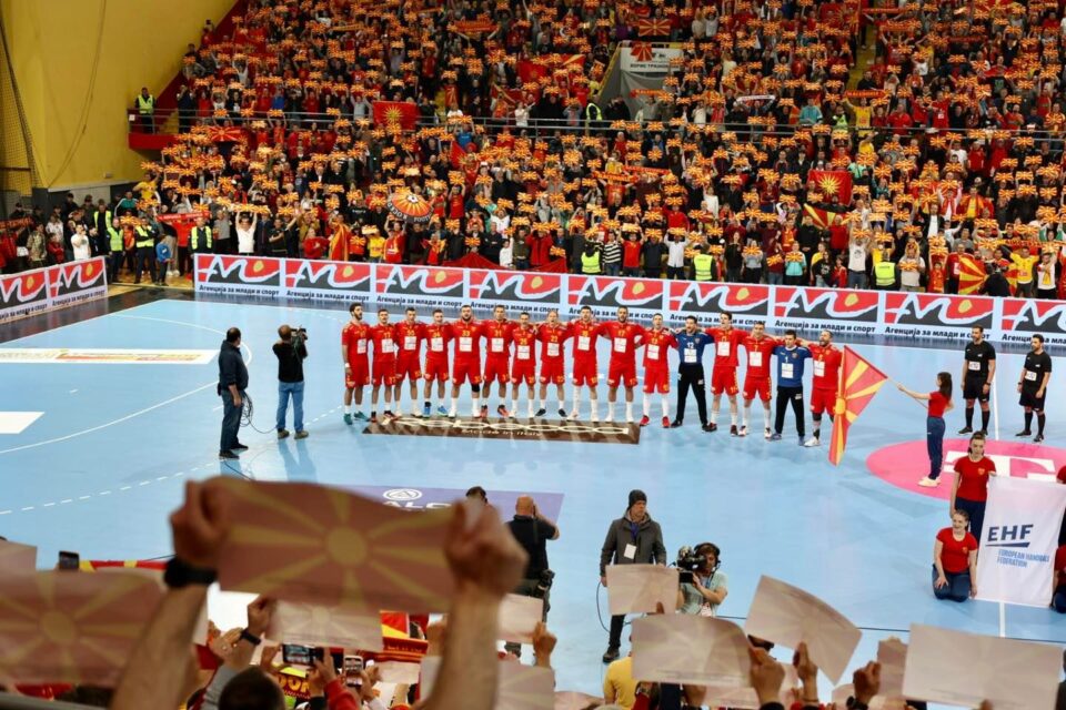 Македонија вечерва се бори за пласман на Светското првенство во Шведска и Полска во јануари идната година, потребна ни е победа за шести Мундијал во низа, а осми во историјата и пред стартот на мечот, се разбуди вулканот во СЦ „Борис Трајковски“ при интонирањето на химната на Македонија.