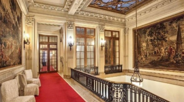 Скалите и подот се покриени со бел мермер, а таваните специјално украсени, а на ѕидовите има мурали. Оградата на скалите е направена од ковано железо, а дрвените рамки се носени специјално од Франција.