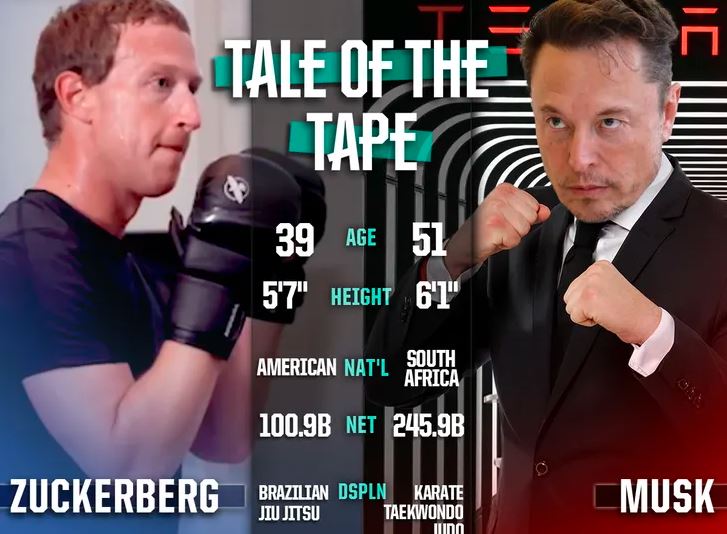 Магнатите на социјалните мрежи од јуни меѓусебно се наговараат на физичка пресметка со мешани боречки вештини. Сензацијата започна кога Маск на 20-ти јуни напиша дека е „подготвен за борба во кафез“ со Цукерберг, кој тренира џиу-џицу.