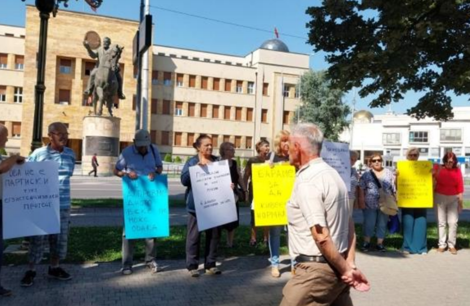 – Излеговме и допрва ќе излегуваме на протест. Го поминавме цел работен стаж во Република Македонија, а сега земаме пензија од Северна Македонија. Не сме дојдени од старост и лудост, туку од старост и гордост. Не убедуваат дека 78% е рамно на 6%. Денес протестираме за сегашноста, а ни лепат партиски етикети. Не видов тука никој да ја покаже партиската книшка, сега сме единствени, велат тие.
