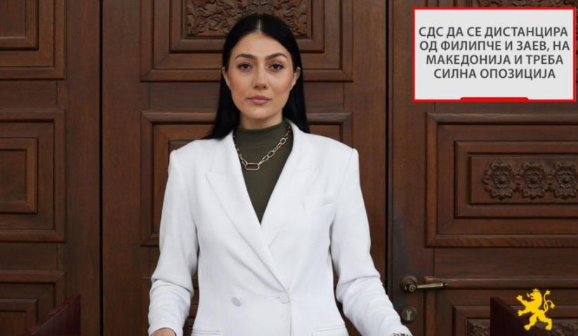 -Се дури СДС е управувана од дуото Филипче-Заев, партијата е далеку од било каква можност за прогрес, консолидација и реформација. За СДС, неопходен е прекинот на папочната врвца со Филипче и Заев, ако сака политички да преживее. Доколку СДС сака да го продолжи својот политички опстанок, Филипче треба да си поднесе оставка. Македонија има потреба од силна опозиција, надвор од периметарот на Филипче и Заев, вели таа.